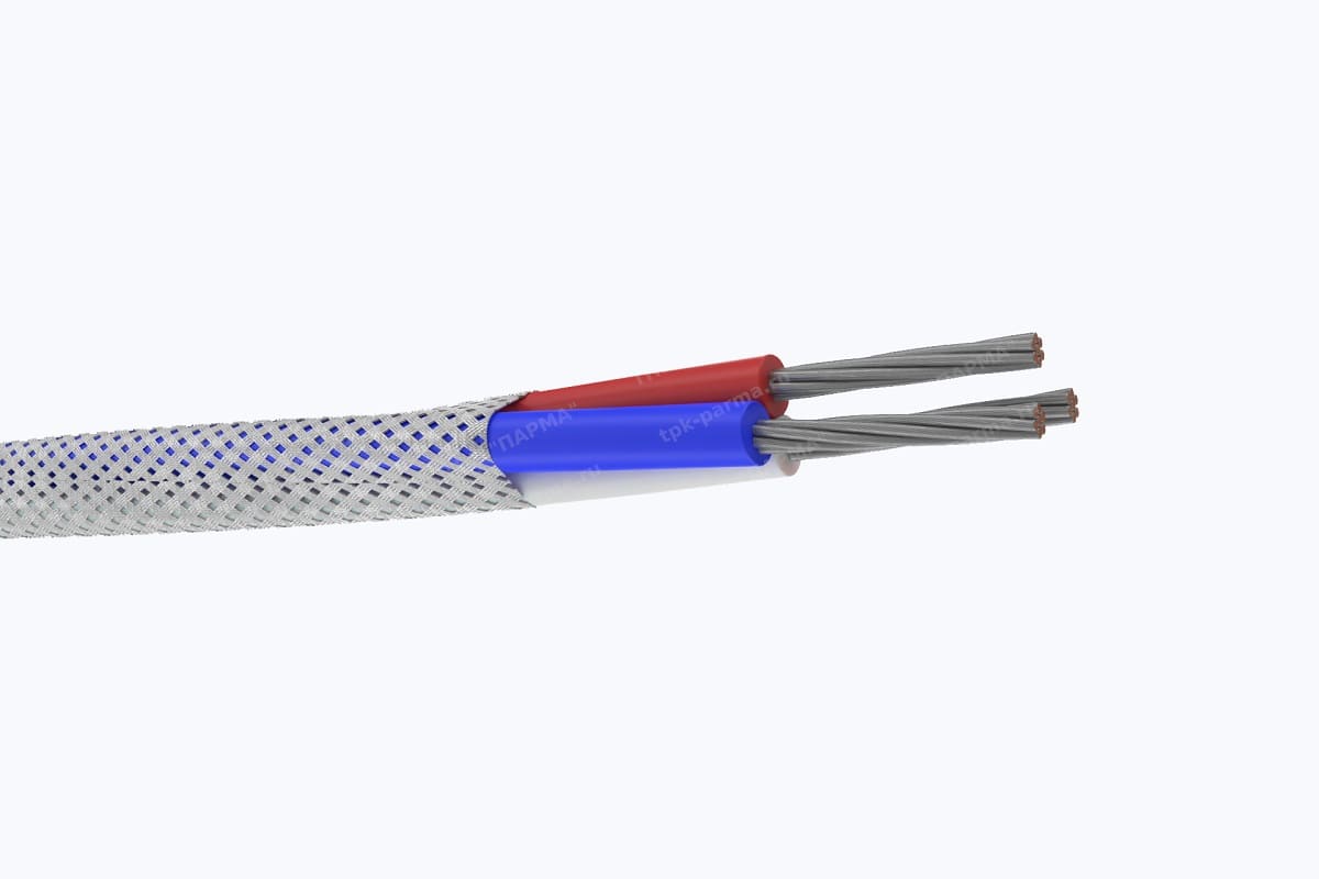 1. Две многопроволочные медные лужёные токопроводящие жилы с площадью номинального поперечного сечения 1,5 мм2, соответствующие 4 классу по ГОСТ 22483-2012.